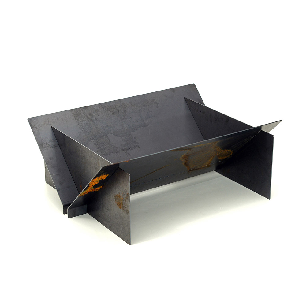 Material: Aço Corten Natural. MATERIAL COM ACABAMENTO RÚSTICO, que vai continuar oxidando com a exposição ao tempo. Produto fornecido desmontado. Simples encaixe de peças, para facilitar armazenamento. Não acompanha lenha.