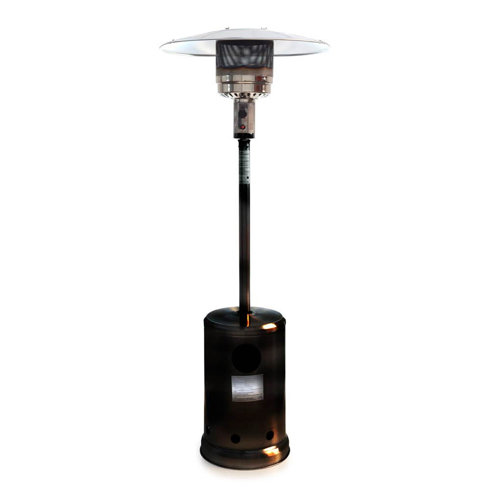 Material: Chapa de Aço com Pintura Eletrostática Preta, Sistema de Queimador em Aço Inoxidável e Chapéu em Alumínio. Sistema de acendimento com ignição à pilha. Equipado com válvula de segurança e termopar, que interrompe o fornecimento de gás caso a chama se apague. Instalação do equipamento diretamente com botijão de gás de 13kgs. Não acompanha regulador/ válvula de gás.