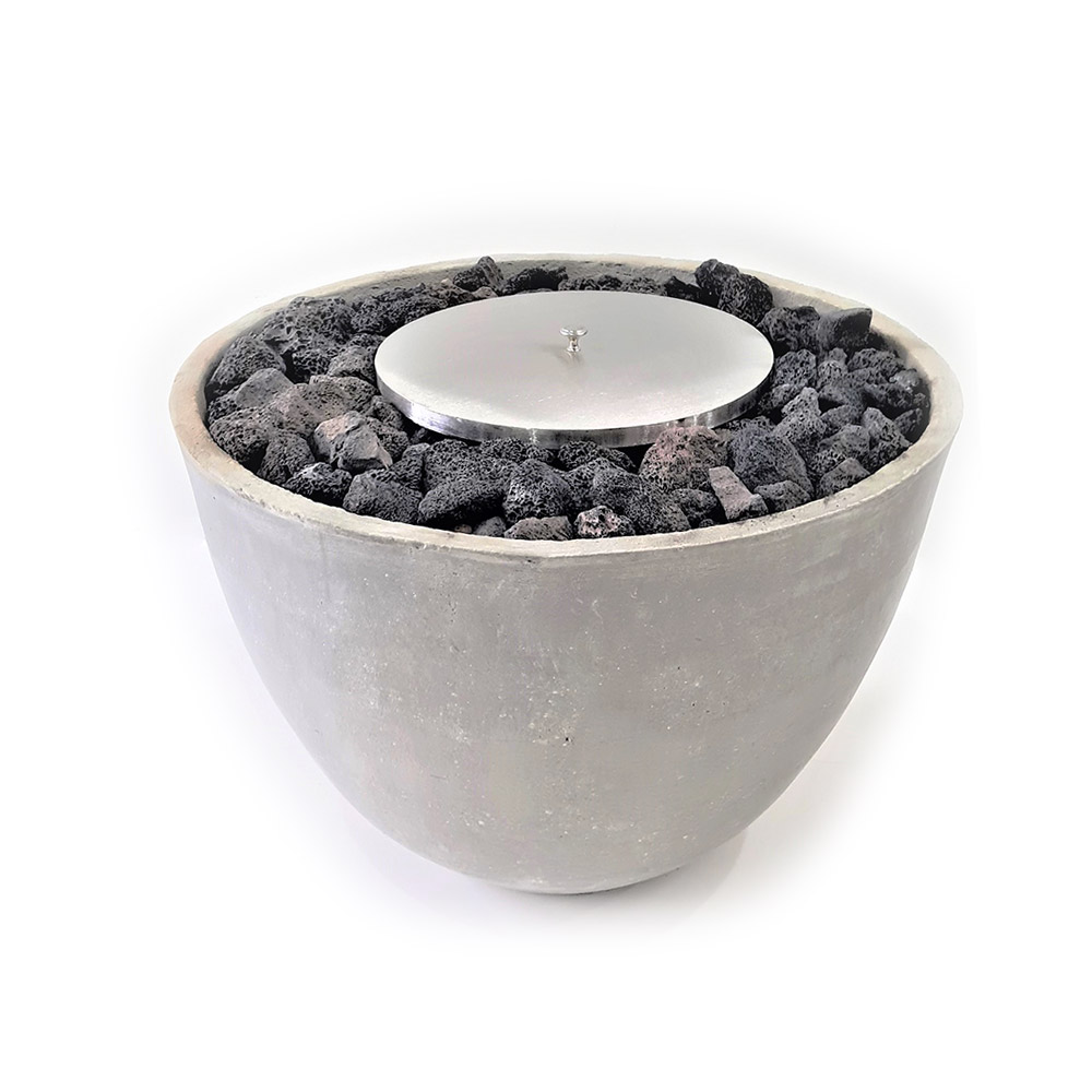 Material: Base em Cimento e queimador redondo em Aço inoxidável MATERIAL COM ACABAMENTO CIMENTO NATURAL LIXADO